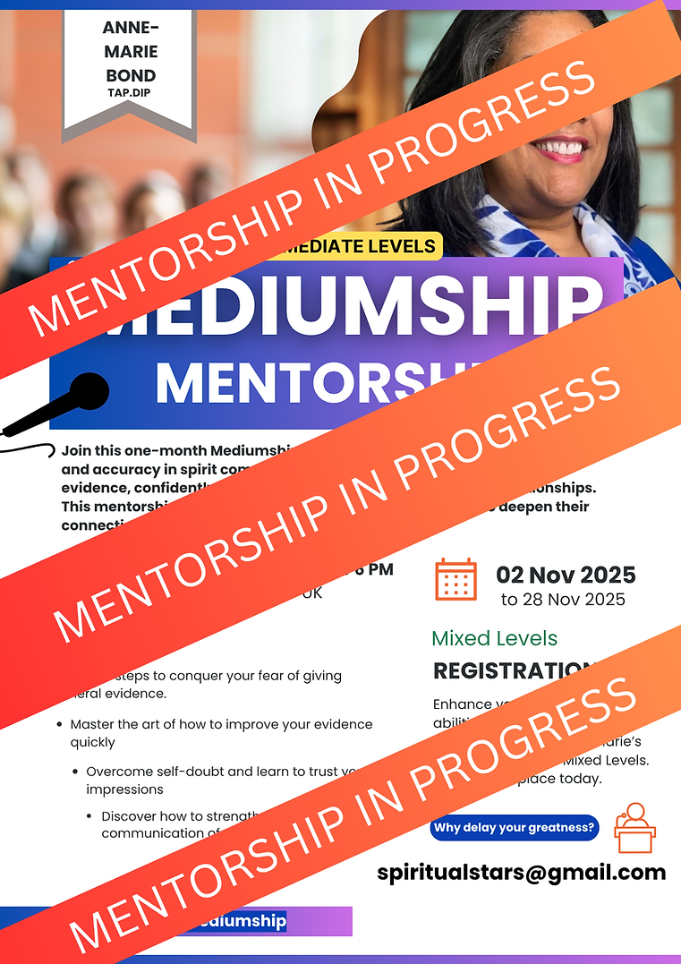Strengthen your connection in Evidential Mental Mediumship. Learn to confidently deliver clear, accurate spirit communications as Anne-Marie guides you through practice and supportive teaching. Suitable for all levels.